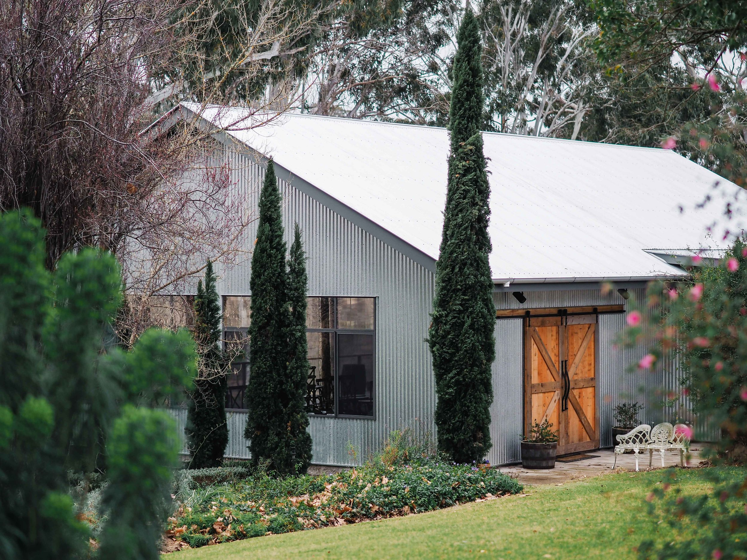 The Barn is Glenrock Gardens purpose built wedding venue and it has become the latest venue of choice in Tenterfield for wedding receptions, events and indeed any function. The building was built in an Aussie Woolshed style and is constructed of various timbers including spotted gum, cypress, and ironbark with massive picture windows and a verandah which brings the garden, metaphorically, right into the venue.